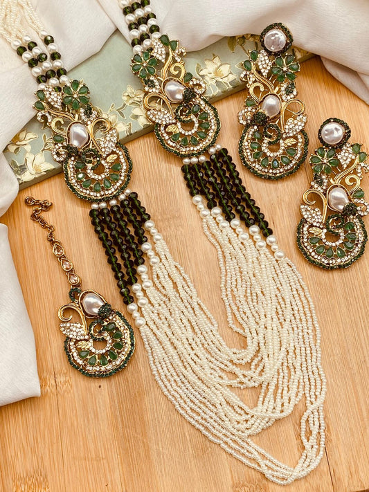 Warda Zirconia Double Bridal set-2381-Golden Nayab Jewellery