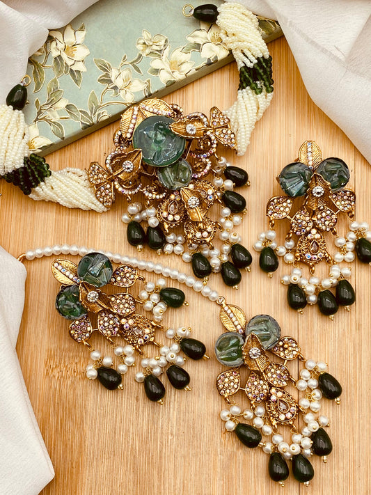 Rose Zarcon Necklace set with Tika-2286-Golden