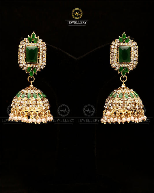 Zarcon Saqure Stone Jhumka-2861-Golden