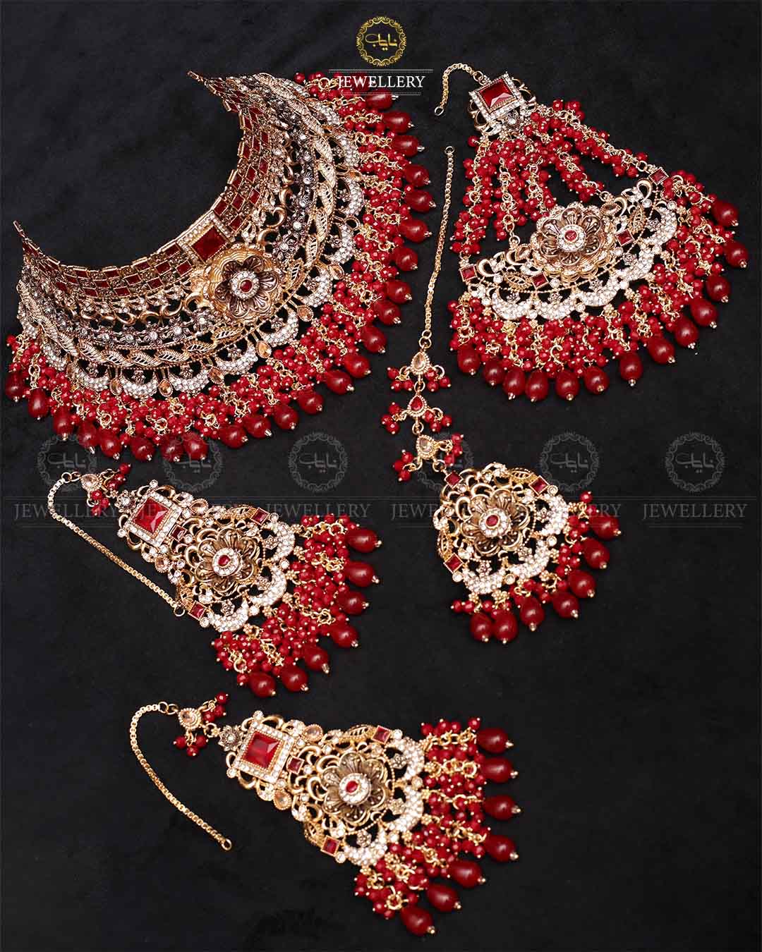 Nayab Jewelry, the leading artificial jewelry brand in Pakistan, we understands that people are constantly searching for the finest artificial jewelry online. If you're someone who's fascinated by the latest designs in artificial jewelry from Pakistan, be sure to explore our collection. Our inventory boasts a wide range of the latest items in various categories, including Mala Set, Locket Set, Bridal sets, Bangles, Earrings, Tops, Stud, Ā Jhumka Ā Rings, Necklace, Chokar, Bracelets, Chains, Bindiya, jhoomar, Calligraphy, and Pendants.