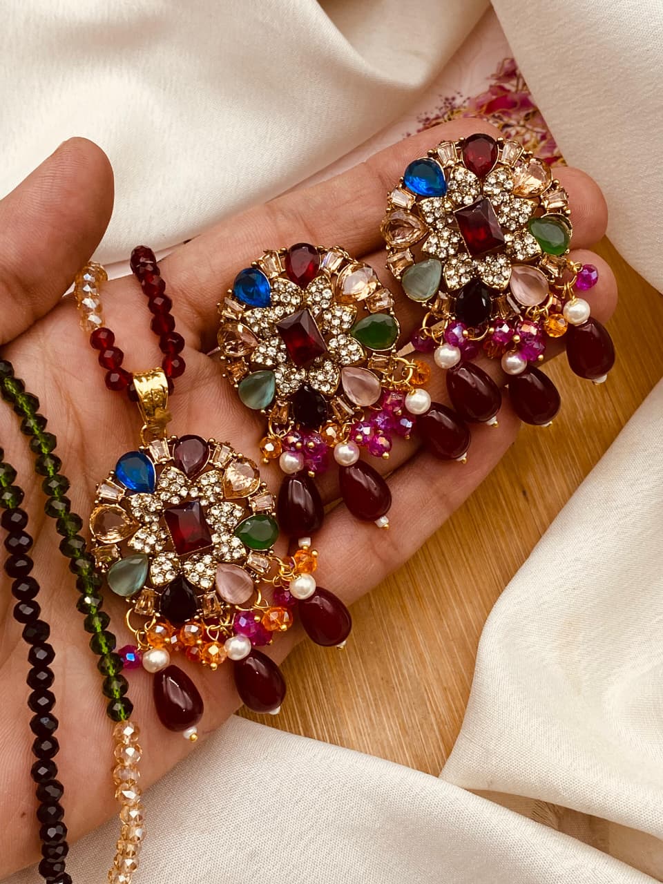 Nayab Jewelry, the leading artificial jewelry brand in Pakistan, we understands that people are constantly searching for the finest artificial jewelry online. If you're someone who's fascinated by the latest designs in artificial jewelry from Pakistan, be sure to explore our collection. Our inventory boasts a wide range of the latest items in various categories, including Mala Set, Locket Set, Bridal sets, Bangles, Earrings, Tops, Stud,  Jhumka  Rings, Necklace, Chokar, Bracelets, Chains, Bindiya, jhoomar, Calligraphy, and Pendants.