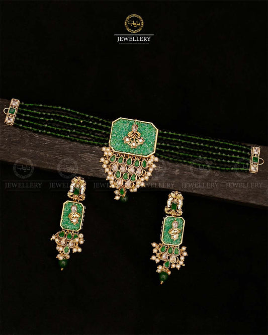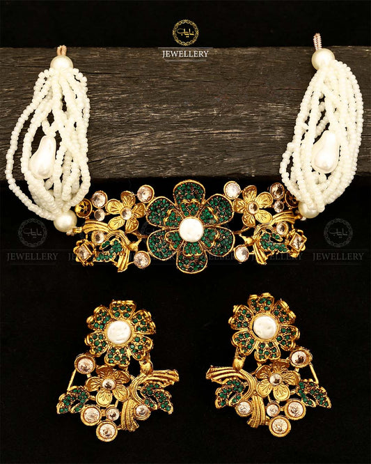 Rajhistani Tulip Lona mala (without earrings)-2307-Golden