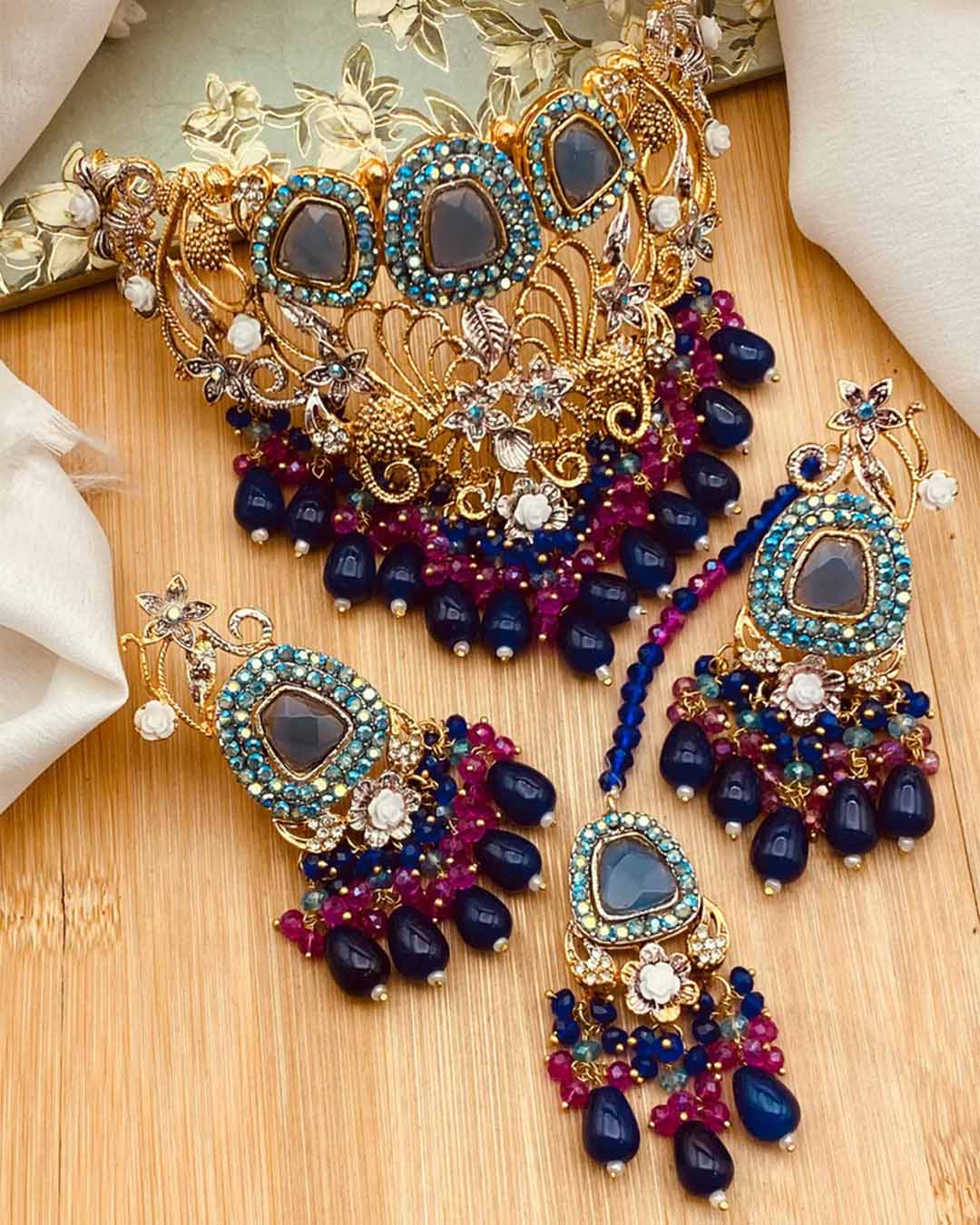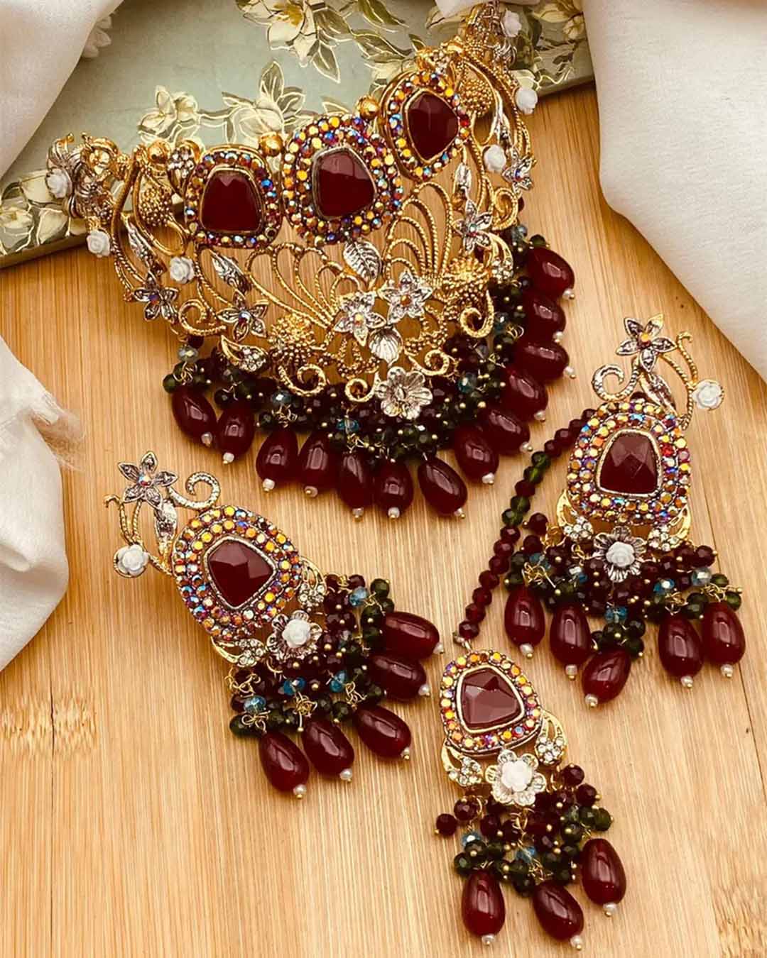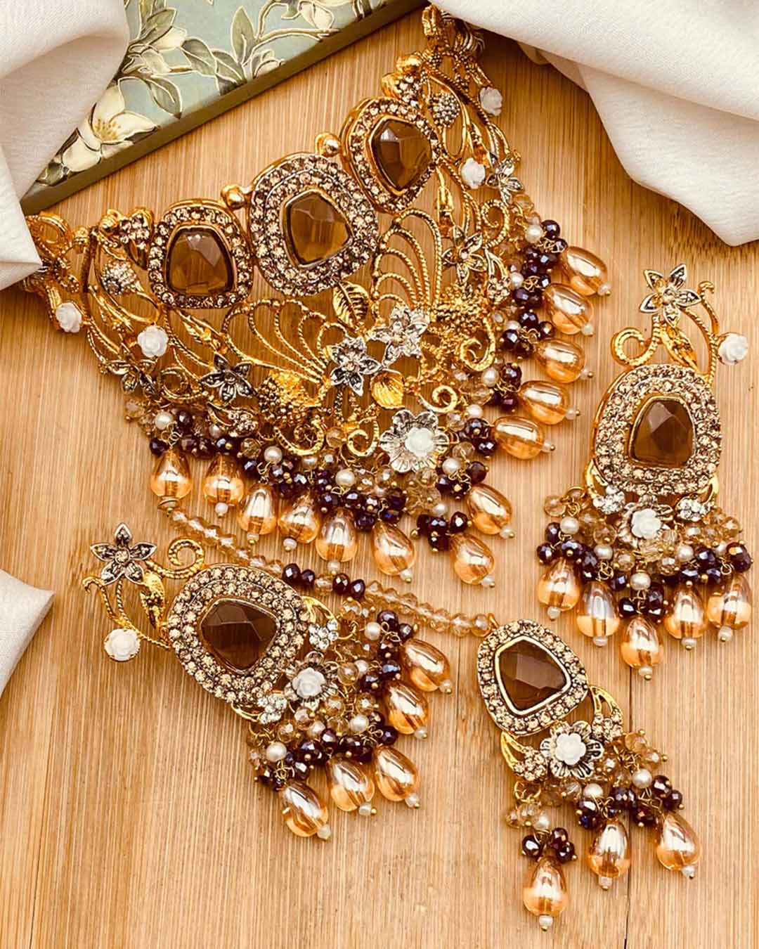 Nayab Jewelry, the leading artificial jewelry brand in Pakistan, we understands that people are constantly searching for the finest artificial jewelry online. If you're someone who's fascinated by the latest designs in artificial jewelry from Pakistan, be sure to explore our collection. Our inventory boasts a wide range of the latest items in various categories, including Mala Set, Locket Set, Bridal sets, Bangles, Earrings, Tops, Stud, Ā Jhumka Ā Rings, Necklace, Chokar, Bracelets, Chains, Bindiya, jhoomar, Calligraphy, and Pendants.