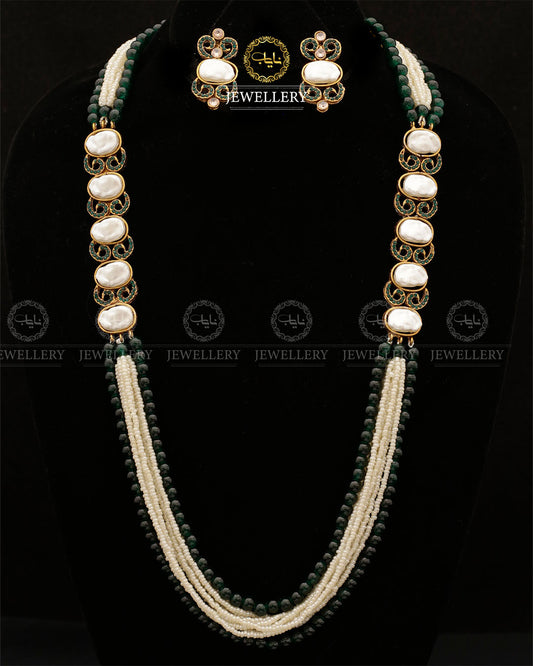 Kundan Long Bridal Mala (without Earrings)-2578-Silver