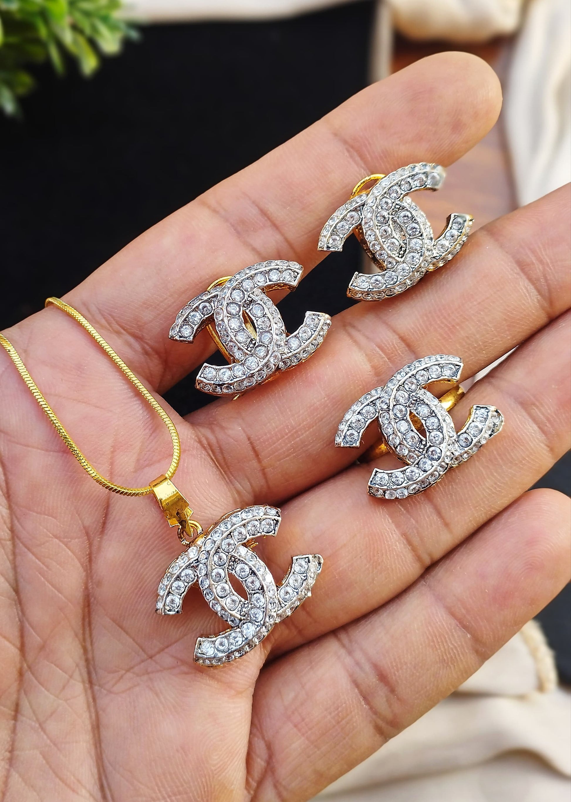 Channel Pendant combo Locket set with chain-2433