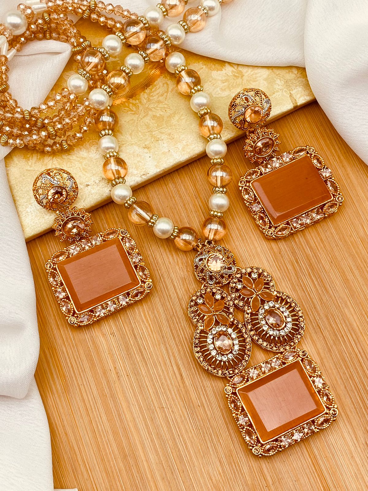 Nayab Jewelry, the leading artificial jewelry brand in Pakistan, we understands that people are constantly searching for the finest artificial jewelry online. If you're someone who's fascinated by the latest designs in artificial jewelry from Pakistan, be sure to explore our collection. Our inventory boasts a wide range of the latest items in various categories, including Mala Set, Locket Set, Bridal sets, Bangles, Earrings, Tops, Stud, Jhumka Rings, Necklace, Chokar, Bracelets, Chains, Bindiya, jhoomar, Calligraphy, and Pendants.