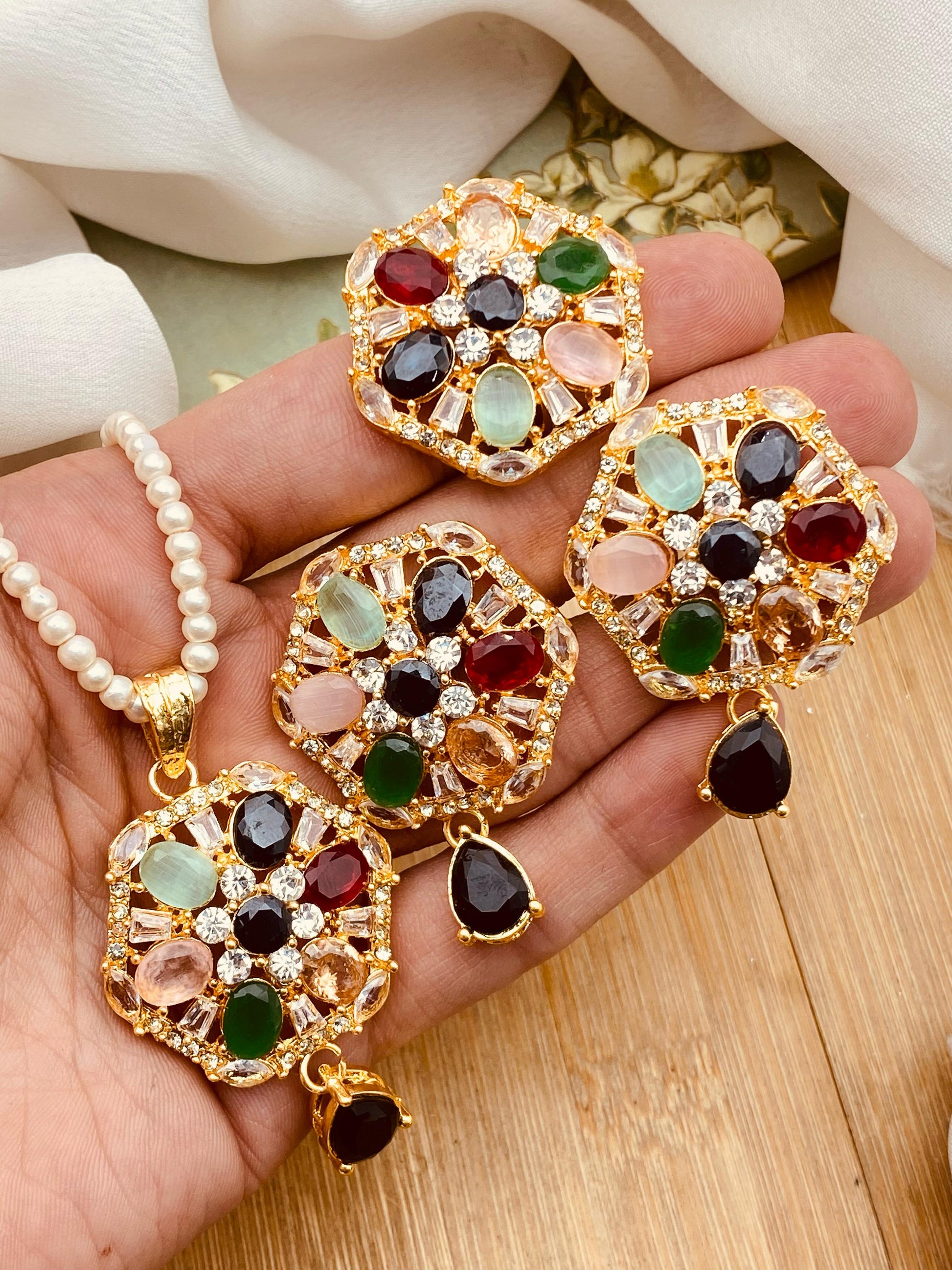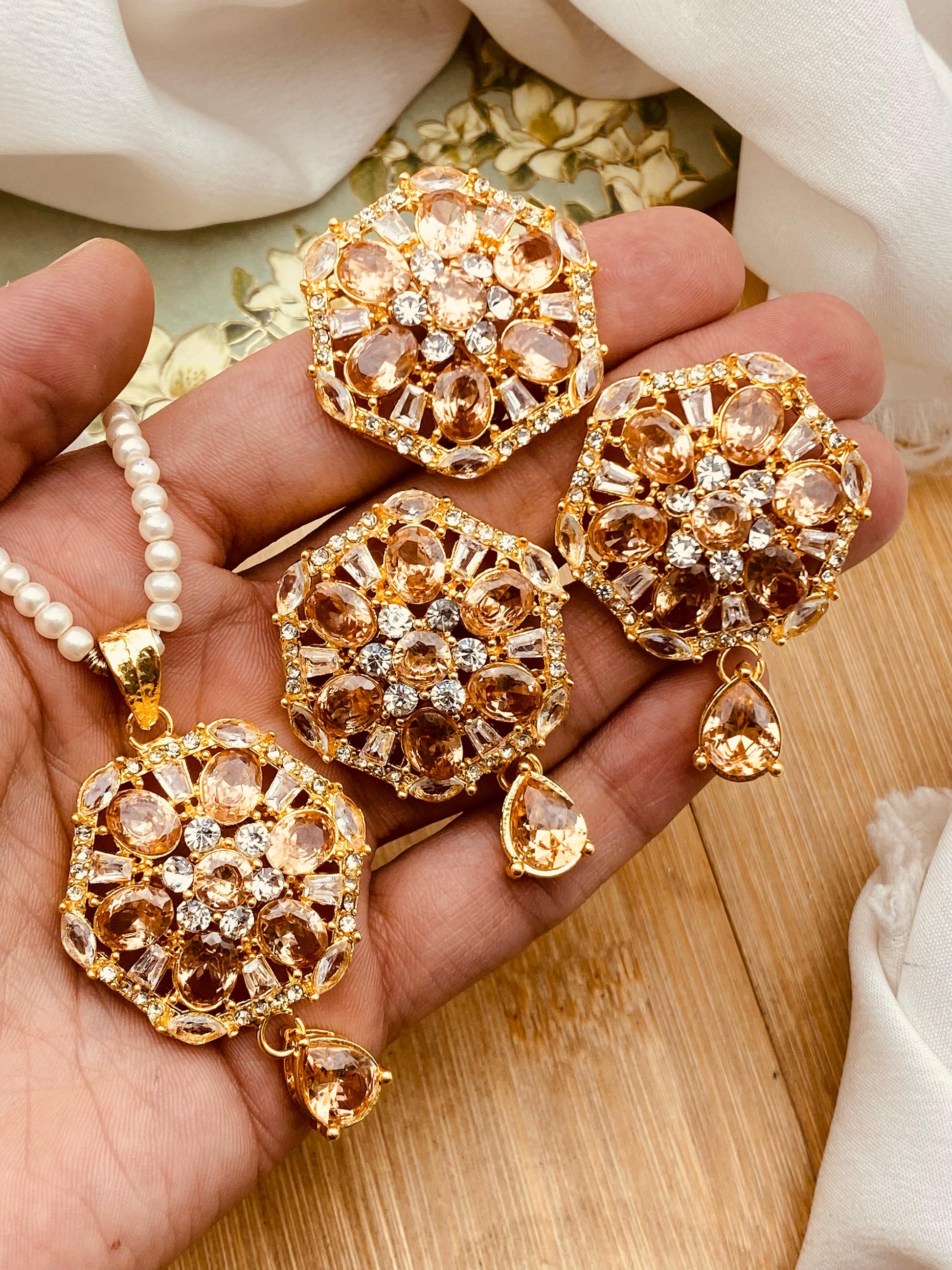 Nayab Jewelry, the leading artificial jewelry brand in Pakistan, we understands that people are constantly searching for the finest artificial jewelry online. If you're someone who's fascinated by the latest designs in artificial jewelry from Pakistan, be sure to explore our collection. Our inventory boasts a wide range of the latest items in various categories, including Mala Set, Locket Set, Bridal sets, Bangles, Earrings, Tops, Stud, Jhumka Rings, Necklace, Chokar, Bracelets, Chains, Bindiya, jhoomar, Calligraphy, and Pendants.