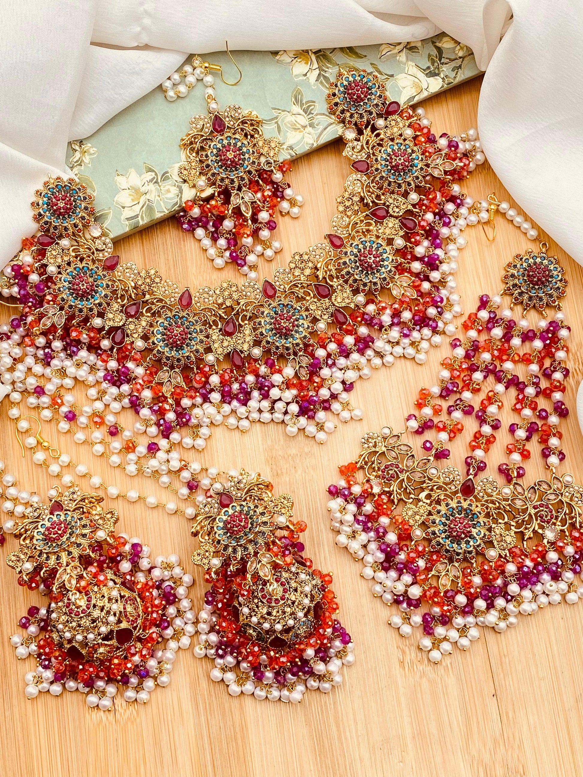 Nayab Jewelry, the leading artificial jewelry brand in Pakistan, we understands that people are constantly searching for the finest artificial jewelry online. If you're someone who's fascinated by the latest designs in artificial jewelry from Pakistan, be sure to explore our collection. Our inventory boasts a wide range of the latest items in various categories, including Mala Set, Locket Set, Bridal sets, Bangles, Earrings, Tops, Stud, Ā Jhumka Ā Rings, Necklace, Chokar, Bracelets, Chains, Bindiya, jhoomar, Calligraphy, and Pendants.