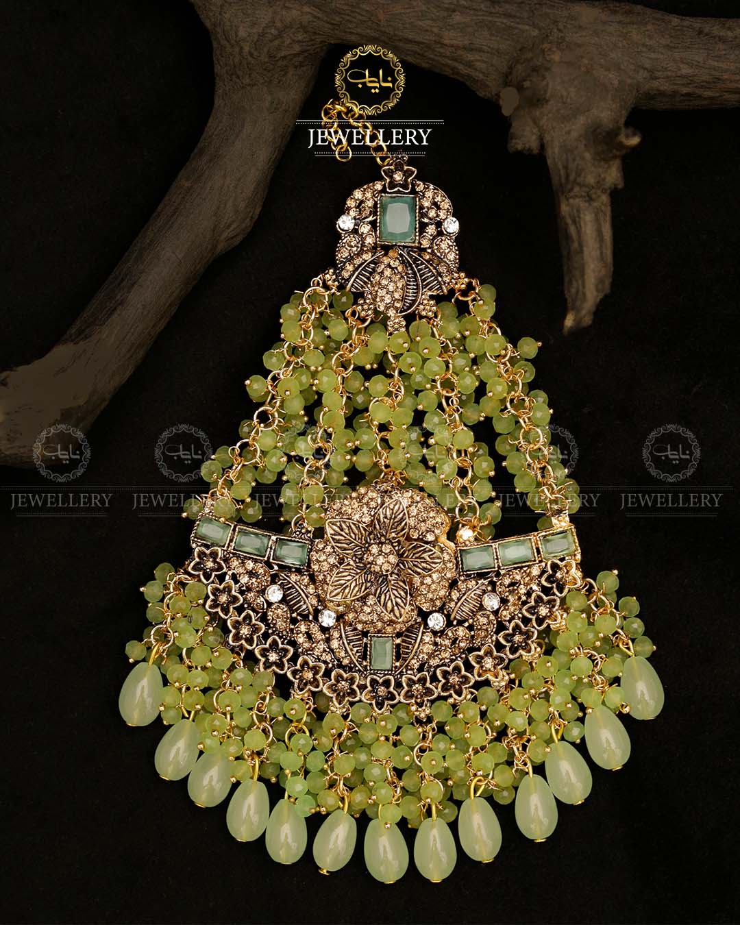 Nayab Jewelry, the leading artificial jewelry brand in Pakistan, we understands that people are constantly searching for the finest artificial jewelry online. If you're someone who's fascinated by the latest designs in artificial jewelry from Pakistan, be sure to explore our collection. Our inventory boasts a wide range of the latest items in various categories, including Mala Set, Locket Set, Bridal sets, Bangles, Earrings, Tops, Stud,  Jhumka  Rings, Necklace, Chokar, Bracelets, Chains, Bindiya, jhoomar, Calligraphy, and Pendants.