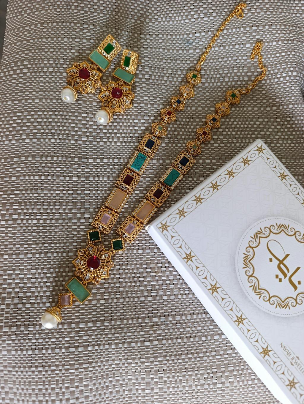 Nayab Jewelry, the leading artificial jewelry brand in Pakistan, we understands that people are constantly searching for the finest artificial jewelry online. If you're someone who's fascinated by the latest designs in artificial jewelry from Pakistan, be sure to explore our collection. Our inventory boasts a wide range of the latest items in various categories, including Mala Set, Locket Set, Bridal sets, Bangles, Earrings, Tops, Stud, Jhumka Rings, Necklace, Chokar, Bracelets, Chains, Bindiya, jhoomar, Calligraphy, and Pendants.