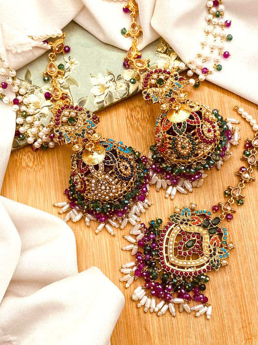 Premium Quality Noratan Sahara Jhumka with Tika NJ-1608