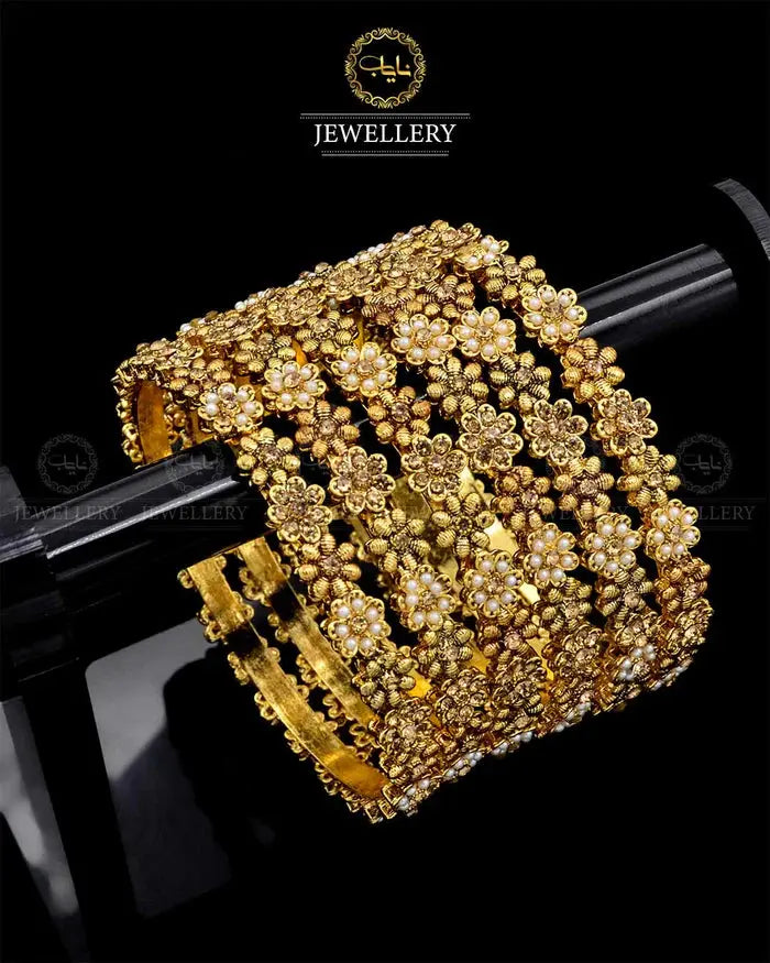 Designer Flower 6 pcs bangles set NJ-1766-Champagne