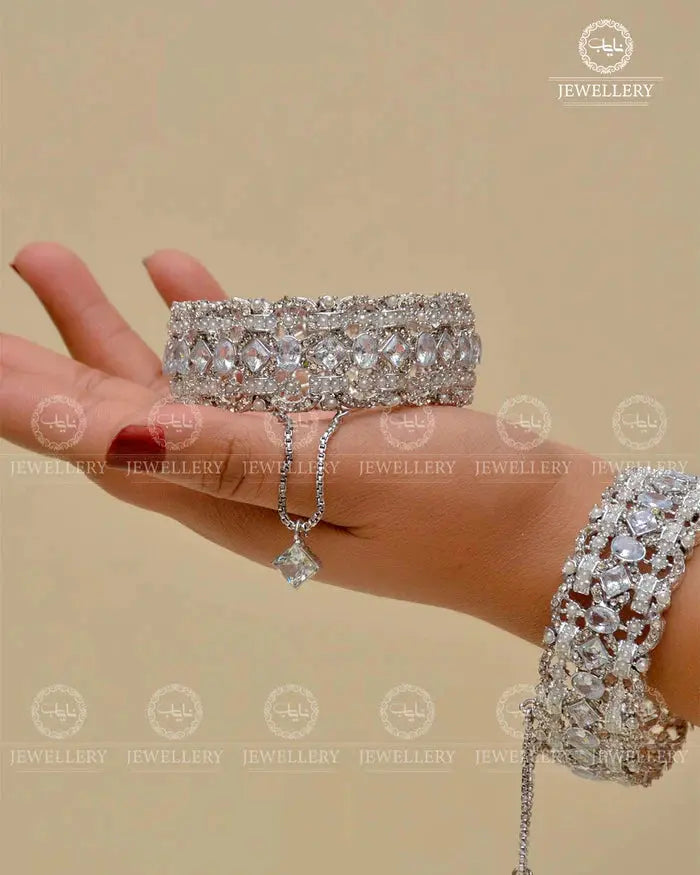 Silver Zarcon Openable Bangles (Pair) NJ-1630-Silver