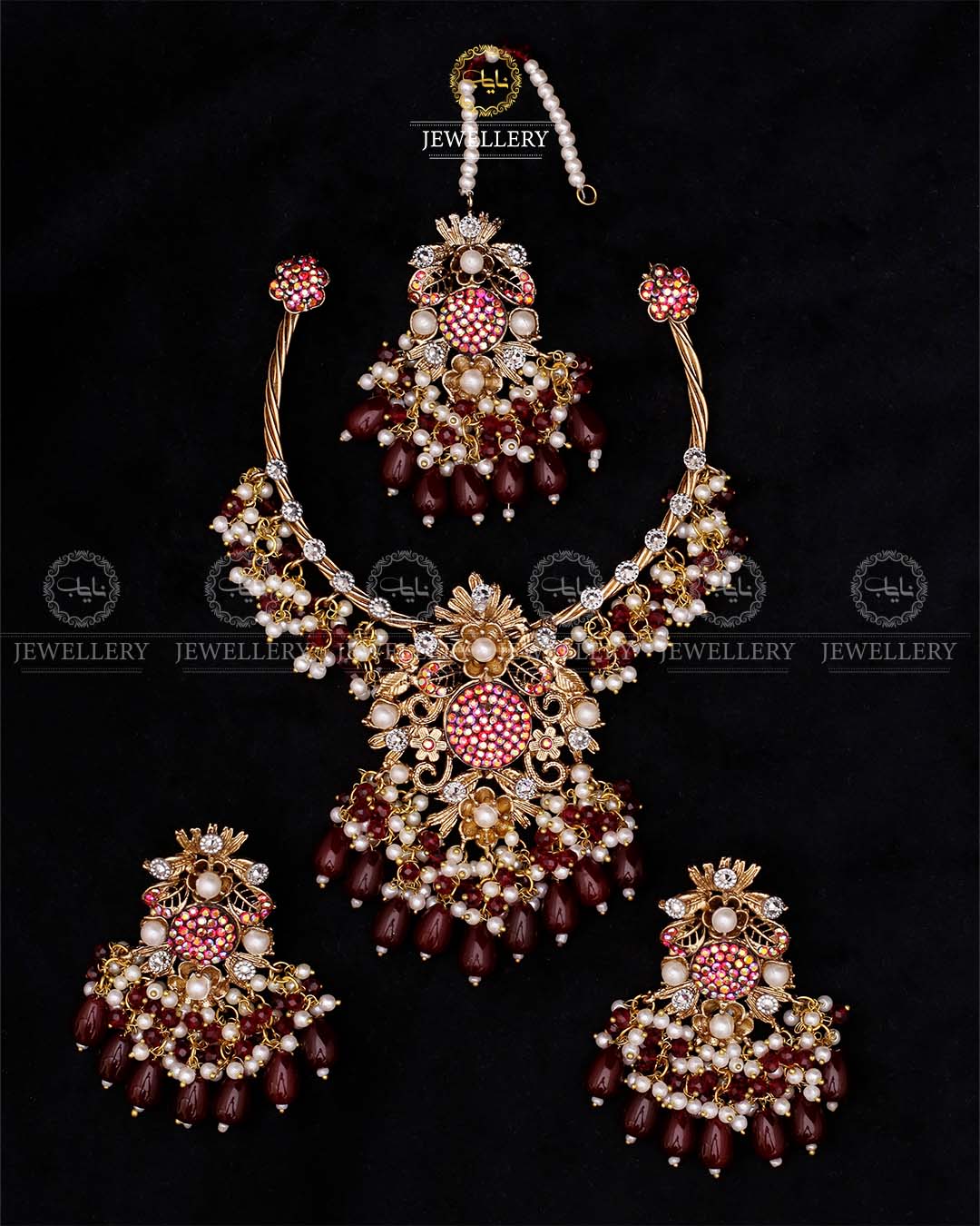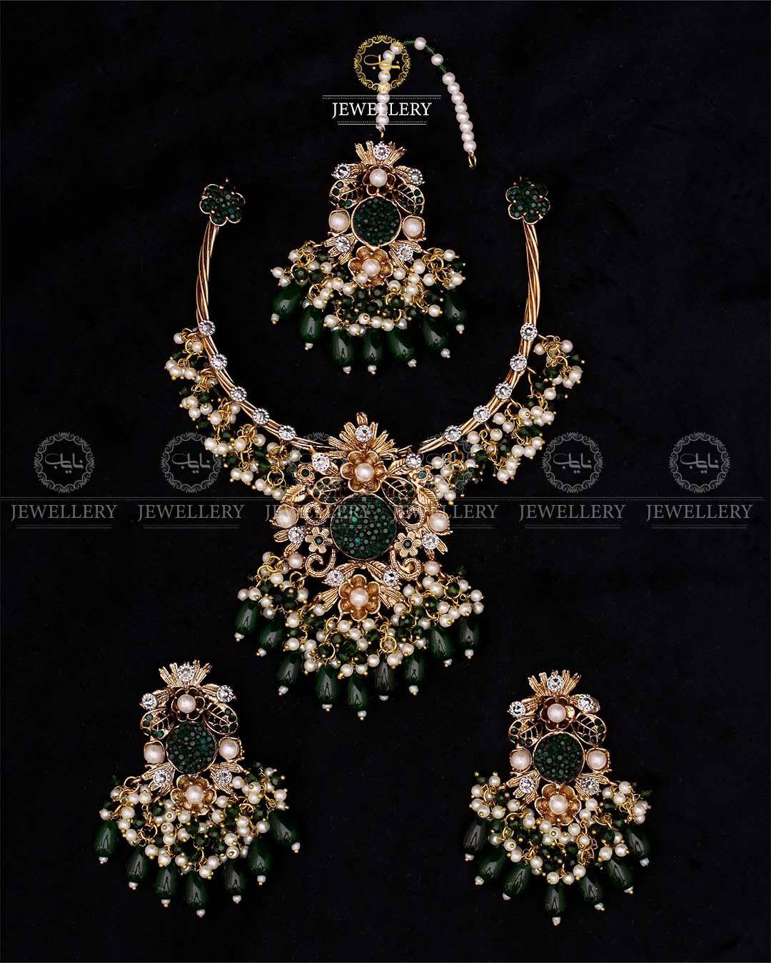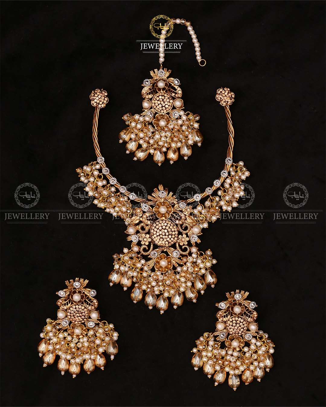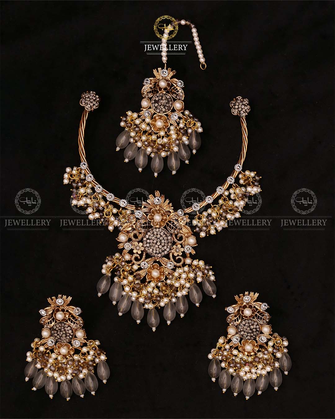 Nayab Jewelry, the leading artificial jewelry brand in Pakistan, we understands that people are constantly searching for the finest artificial jewelry online. If you're someone who's fascinated by the latest designs in artificial jewelry from Pakistan, be sure to explore our collection. Our inventory boasts a wide range of the latest items in various categories, including Mala Set, Locket Set, Bridal sets, Bangles, Earrings, Tops, Stud, Ā Jhumka Ā Rings, Necklace, Chokar, Bracelets, Chains, Bindiya, jhoomar, Calligraphy, and Pendants.