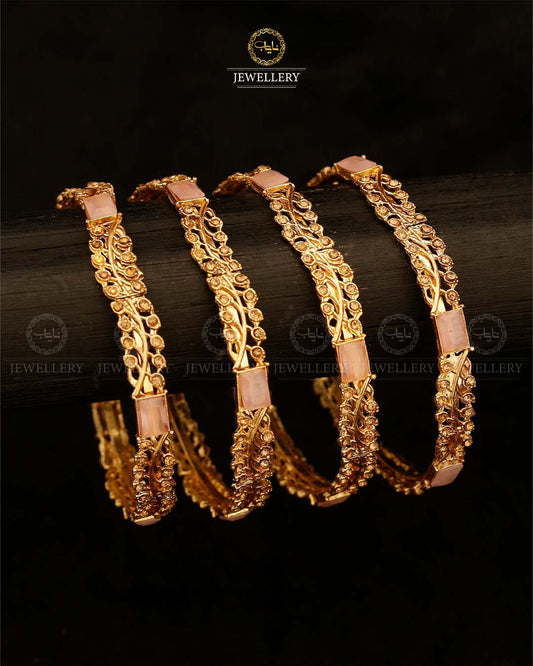 Zirconia Almond Bangles (pair)-2597-Golden Pink