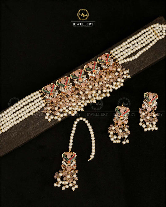 Noratan Bridal Necklace set with Sahara jhumka Tika-2821