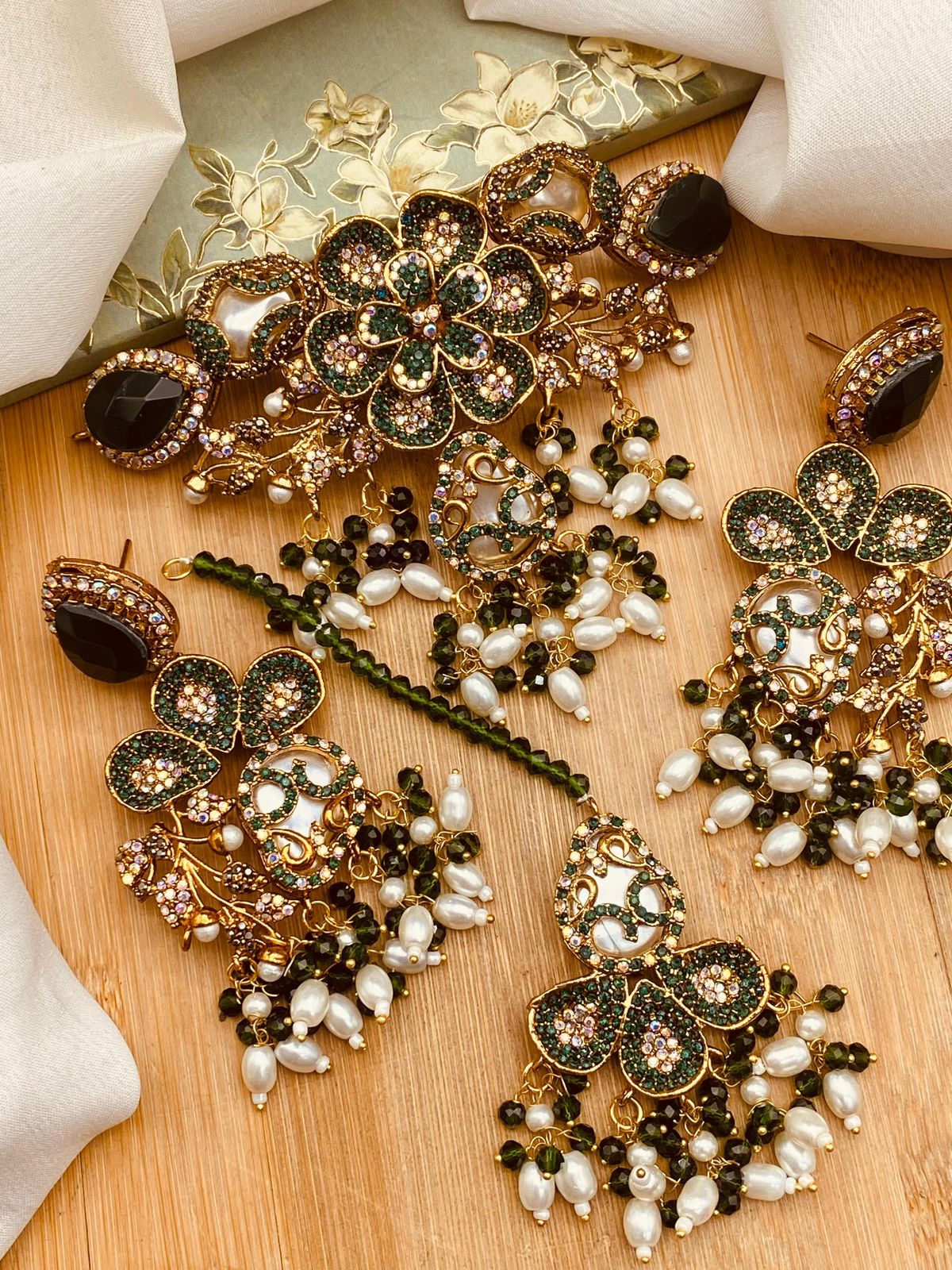 Nayab Jewelry, the leading artificial jewelry brand in Pakistan, we understands that people are constantly searching for the finest artificial jewelry online. If you're someone who's fascinated by the latest designs in artificial jewelry from Pakistan, be sure to explore our collection. Our inventory boasts a wide range of the latest items in various categories, including Mala Set, Locket Set, Bridal sets, Bangles, Earrings, Tops, Stud, Β Jhumka Β Rings, Necklace, Chokar, Bracelets, Chains, Bindiya, jhoomar, Calligraphy, and Pendants.