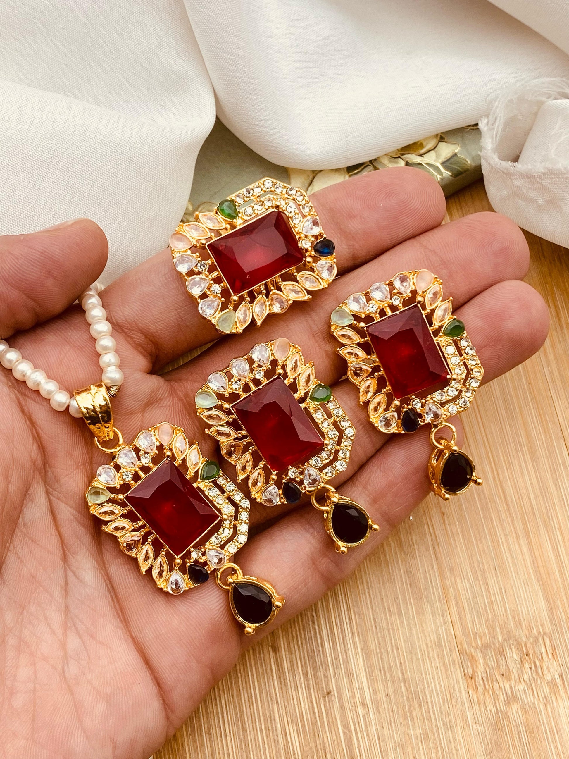 Egyptian Saqure Stone Combo Locket set-2436-Golden
