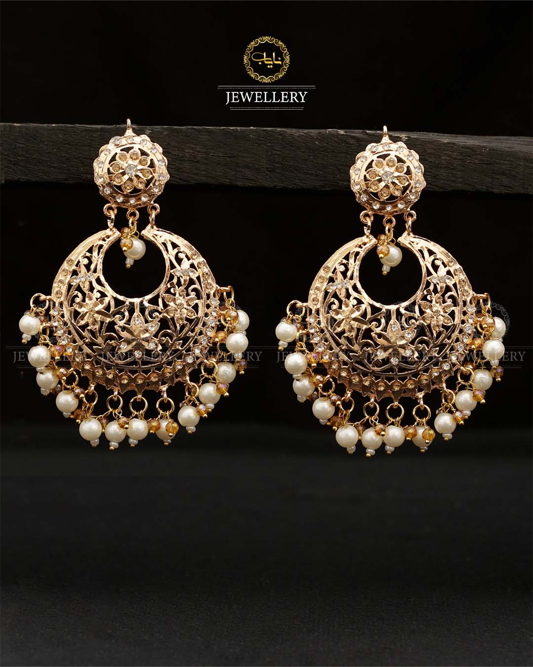 Nayab Jewelry, the leading artificial jewelry brand in Pakistan, we understands that people are constantly searching for the finest artificial jewelry online. If you're someone who's fascinated by the latest designs in artificial jewelry from Pakistan, be sure to explore our collection. Our inventory boasts a wide range of the latest items in various categories, including Mala Set, Locket Set, Bridal sets, Bangles, Earrings, Tops, Stud, Jhumka Rings, Necklace, Chokar, Bracelets, Chains, Bindiya, jhoomar, Calligraphy, and Pendants.