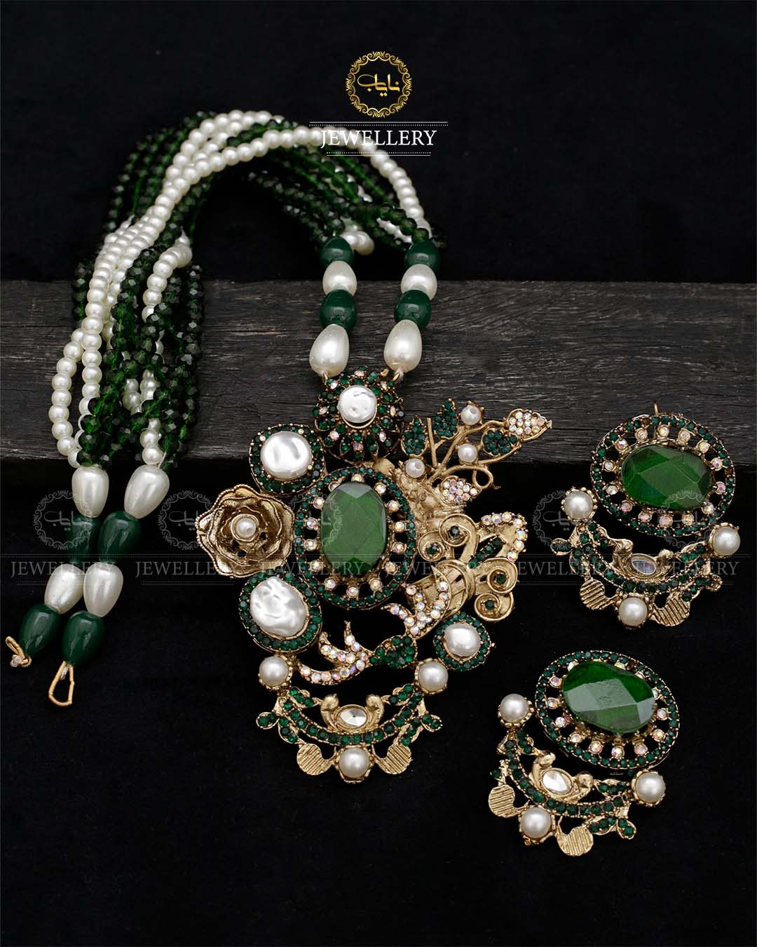Nayab Jewelry, the leading artificial jewelry brand in Pakistan, we understands that people are constantly searching for the finest artificial jewelry online. If you're someone who's fascinated by the latest designs in artificial jewelry from Pakistan, be sure to explore our collection. Our inventory boasts a wide range of the latest items in various categories, including Mala Set, Locket Set, Bridal sets, Bangles, Earrings, Tops, Stud, Jhumka Rings, Necklace, Chokar, Bracelets, Chains, Bindiya, jhoomar, Calligraphy, and Pendants.
