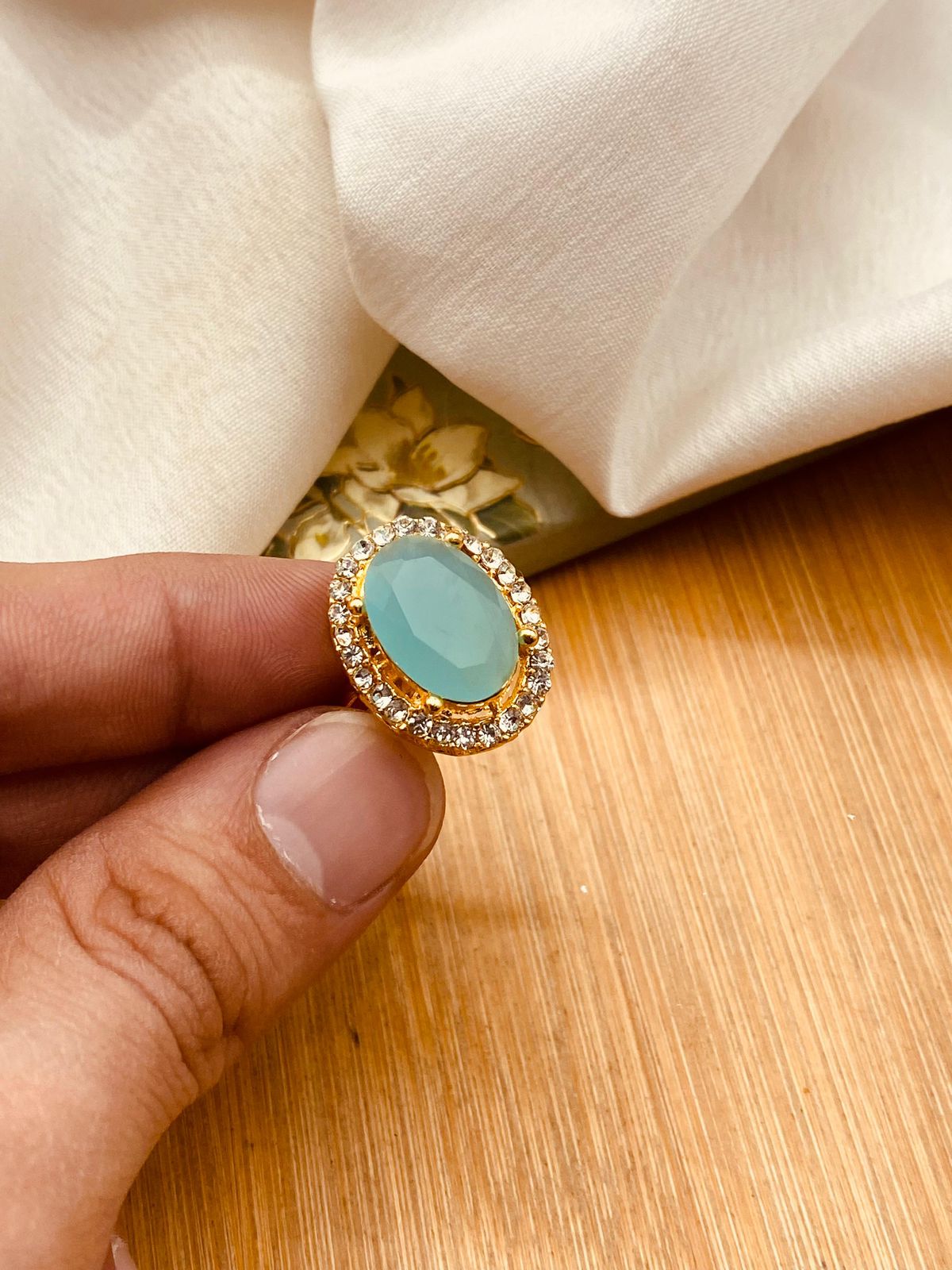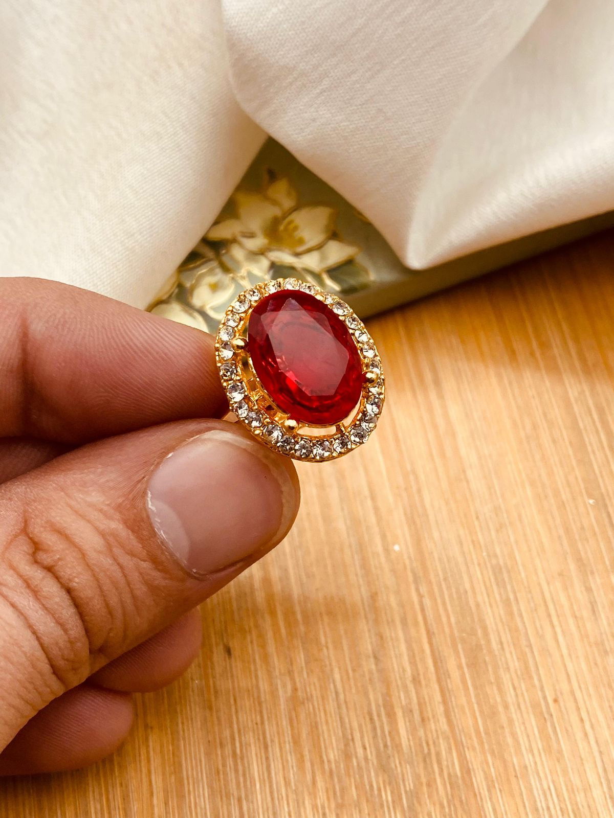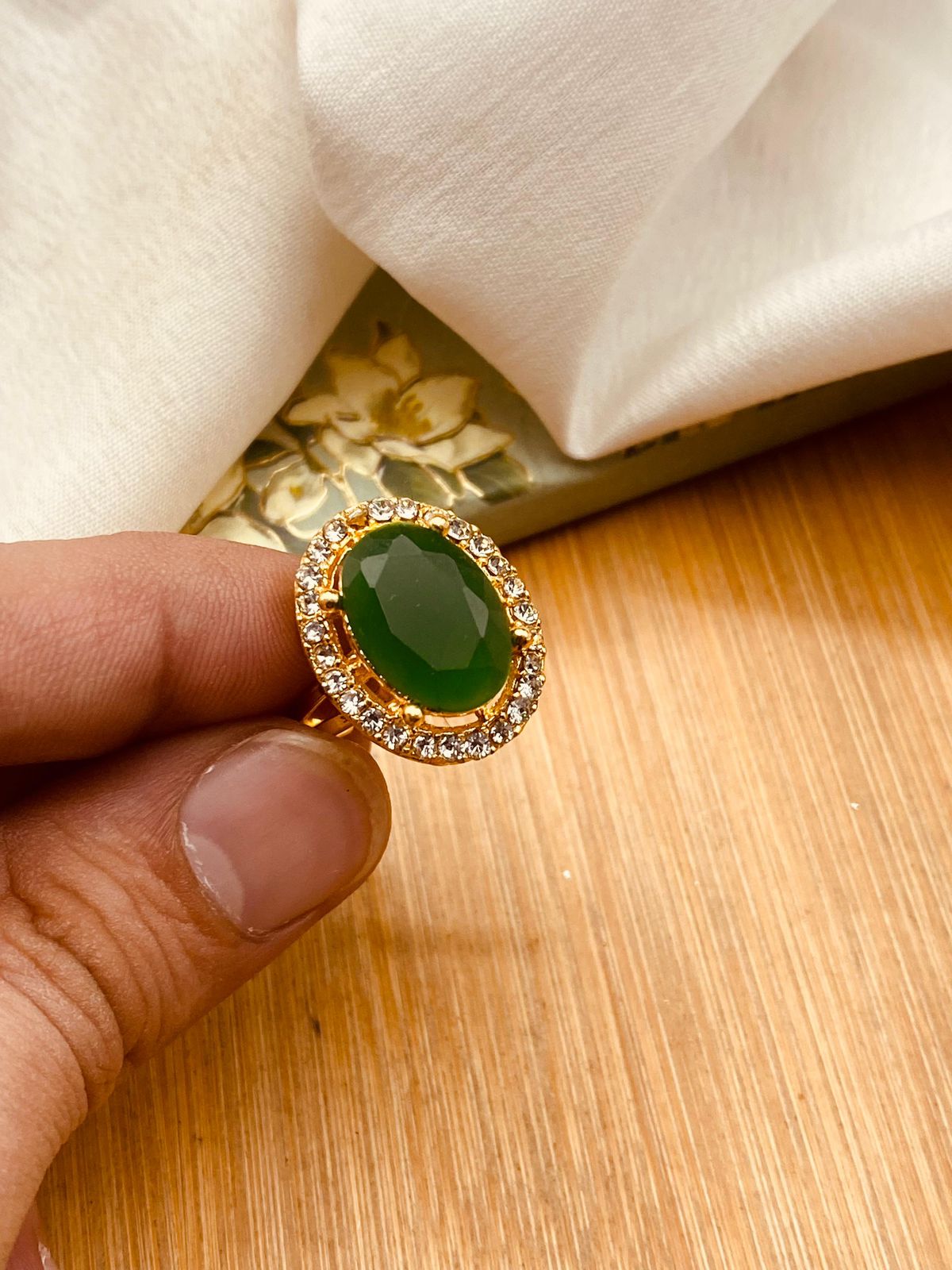 Zirconia Round Ring (Adjustable)-2846-Golden