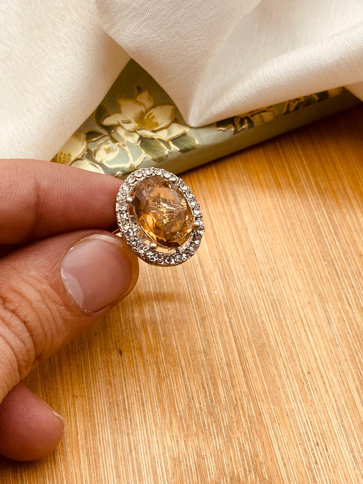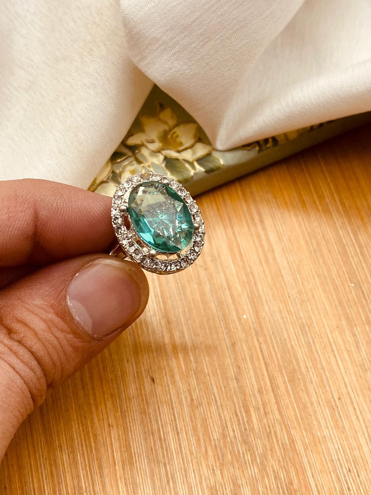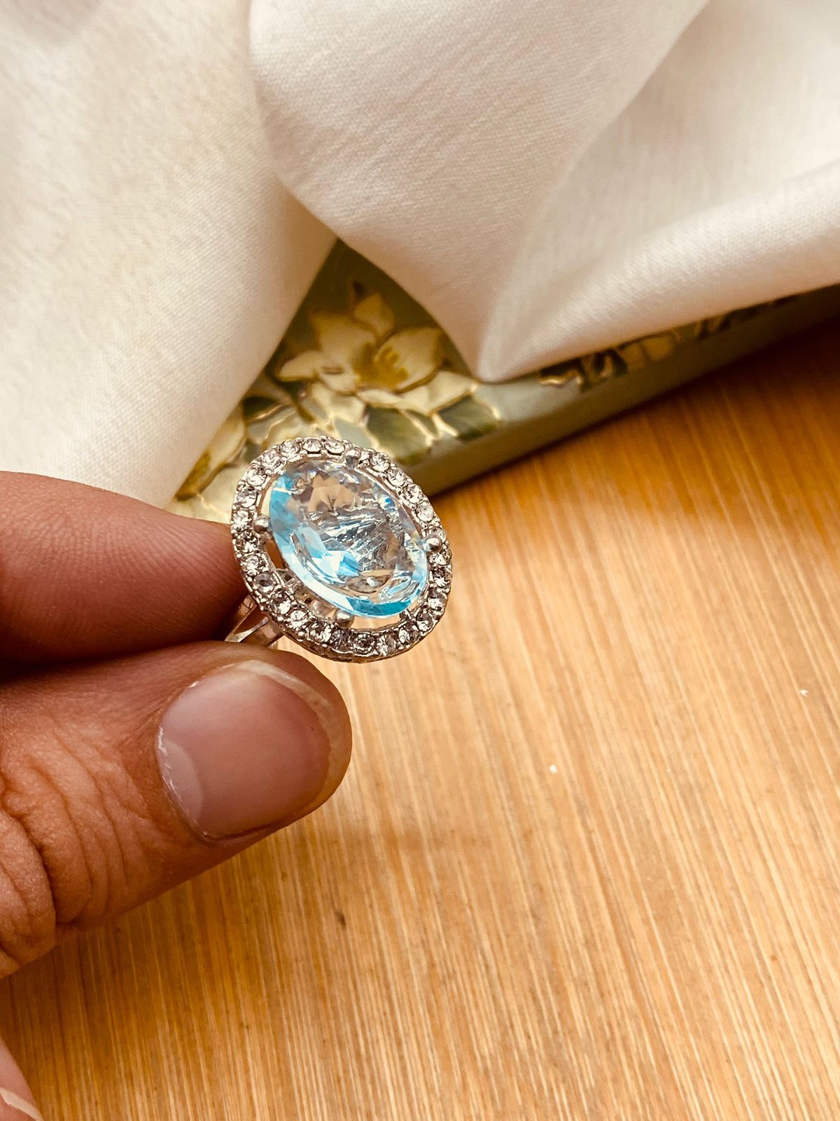 Zirconia Round Ring (Adjustable)-2846-Silver