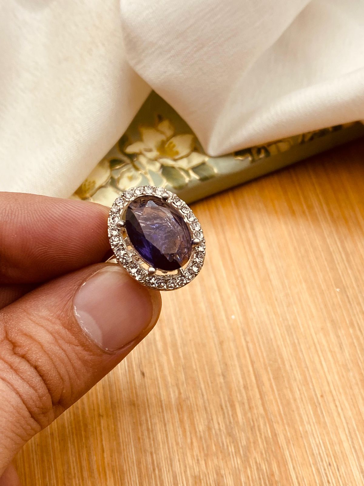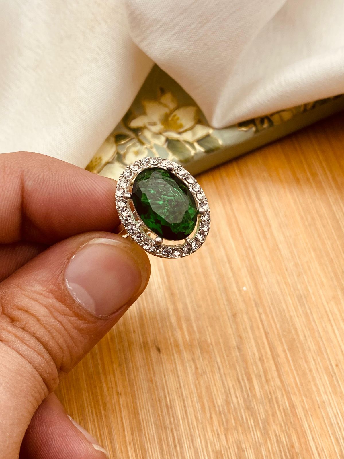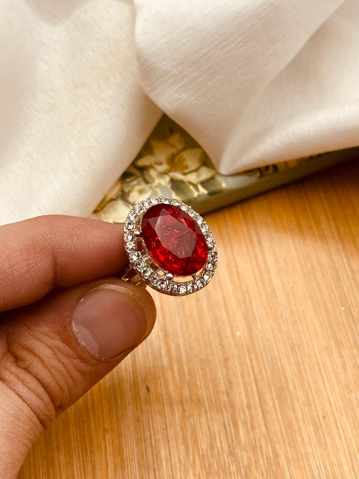 Zirconia Round Ring (Adjustable)-2846-Silver