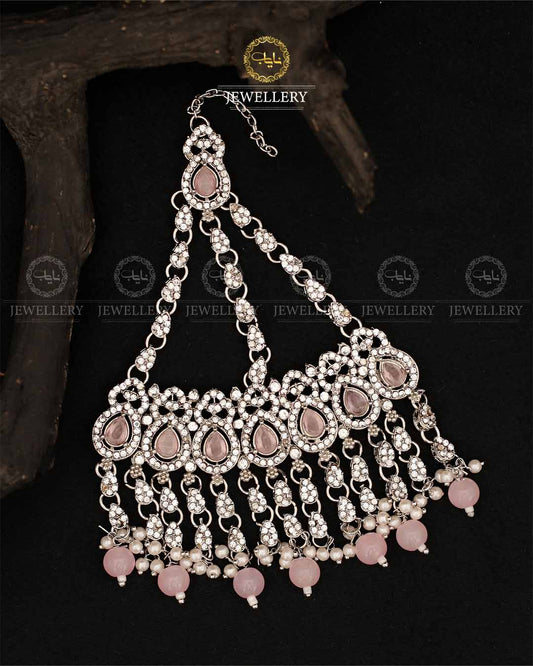 Rose Zarcon Necklace set with Tika-2286-Silver Nayab Jewellery