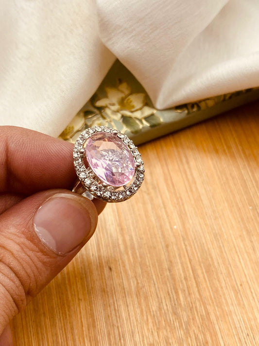 Zirconia Round Ring (Adjustable)-2846-Silver