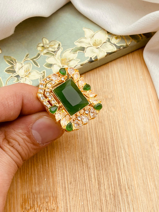 Kundan Angla (Bracelet with Ring)-2042-Golden